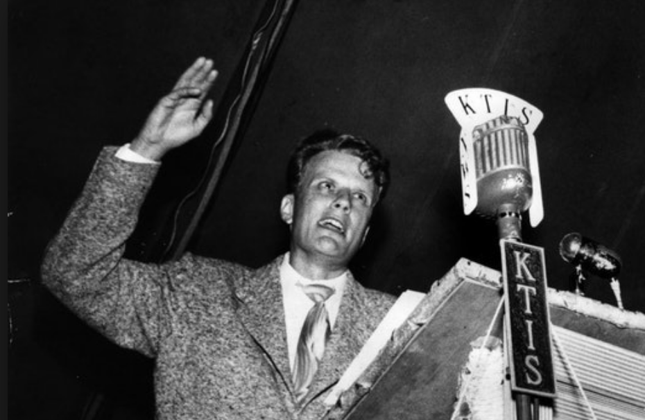 | Billy Graham preaches in the early days of KTIS |